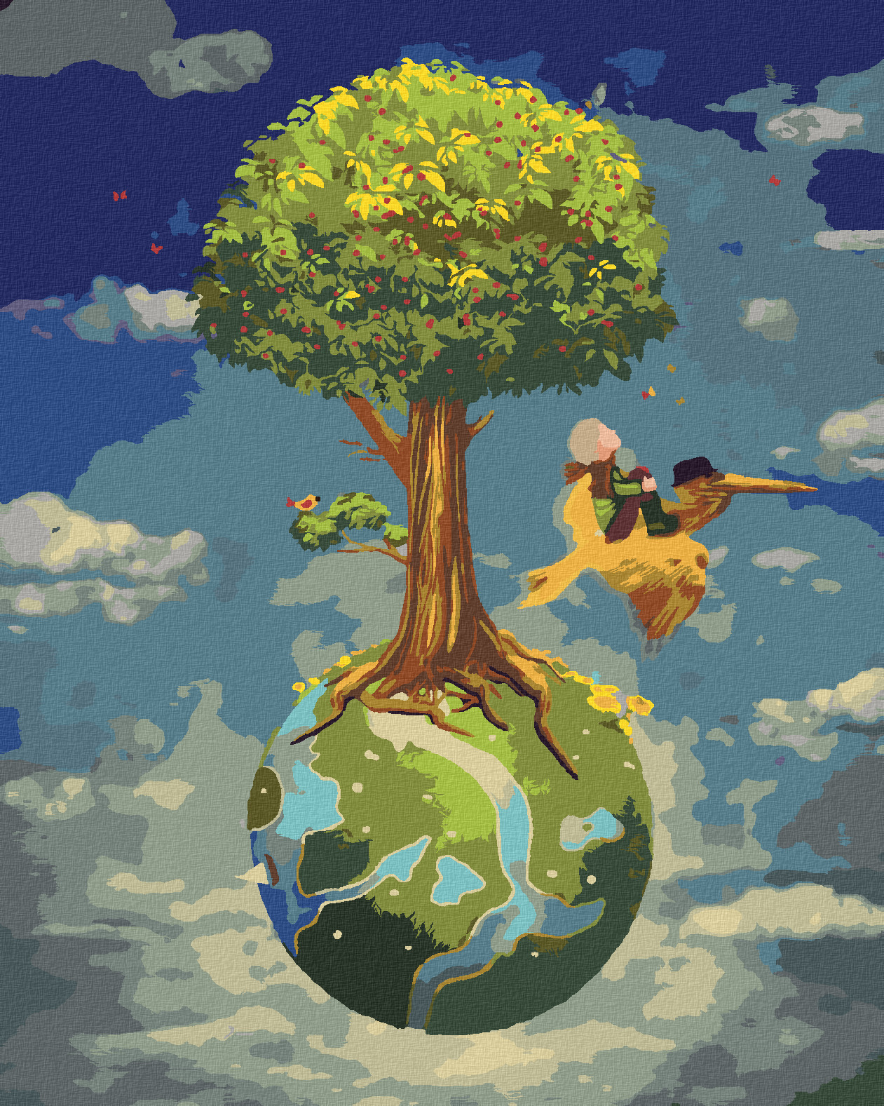 Malování podle čísel - MALÝ PRINC A PELIKÁN - 80x100 cm, bez rámu a bez vypnutí plátna