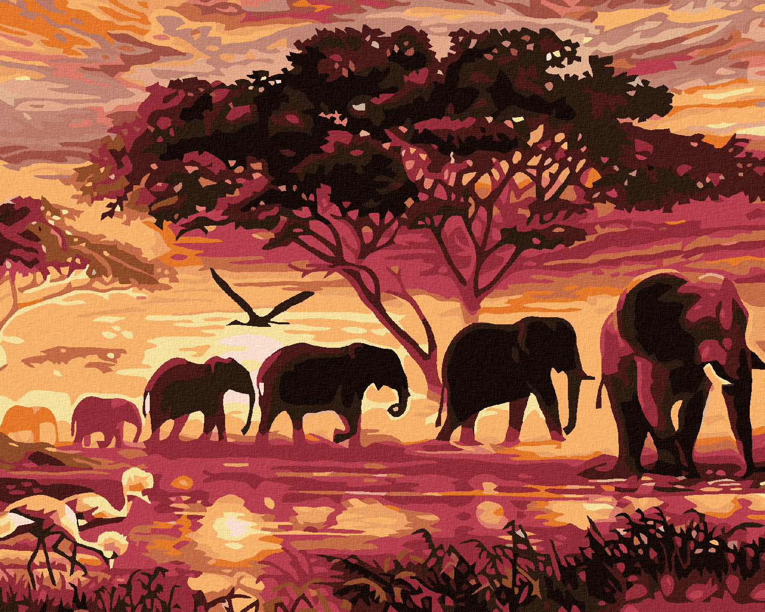 Malování podle čísel - SLONI - 80x100 cm, bez rámu a bez vypnutí plátna