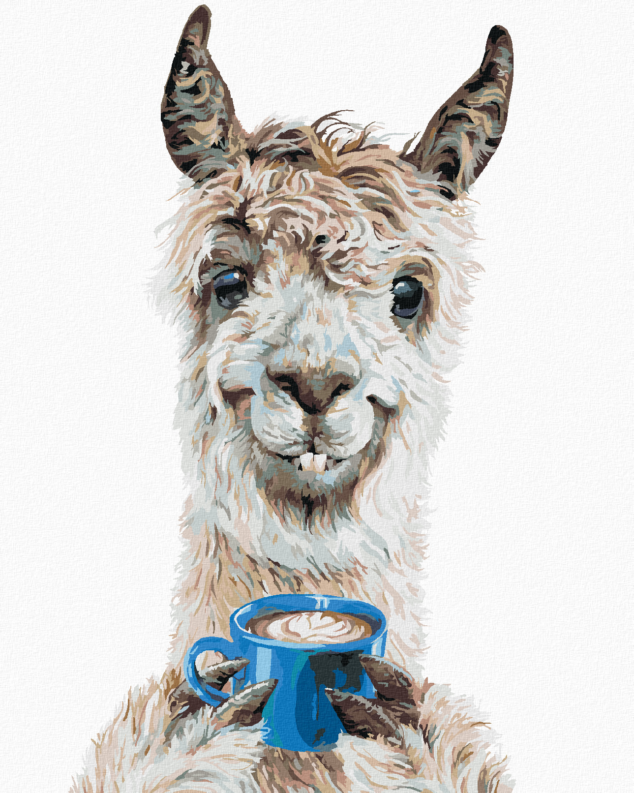 Malování podle čísel - LAMA A KÁVA (HOLLY SIMENTAL) - 80x100 cm, bez rámu a bez vypnutí plátna