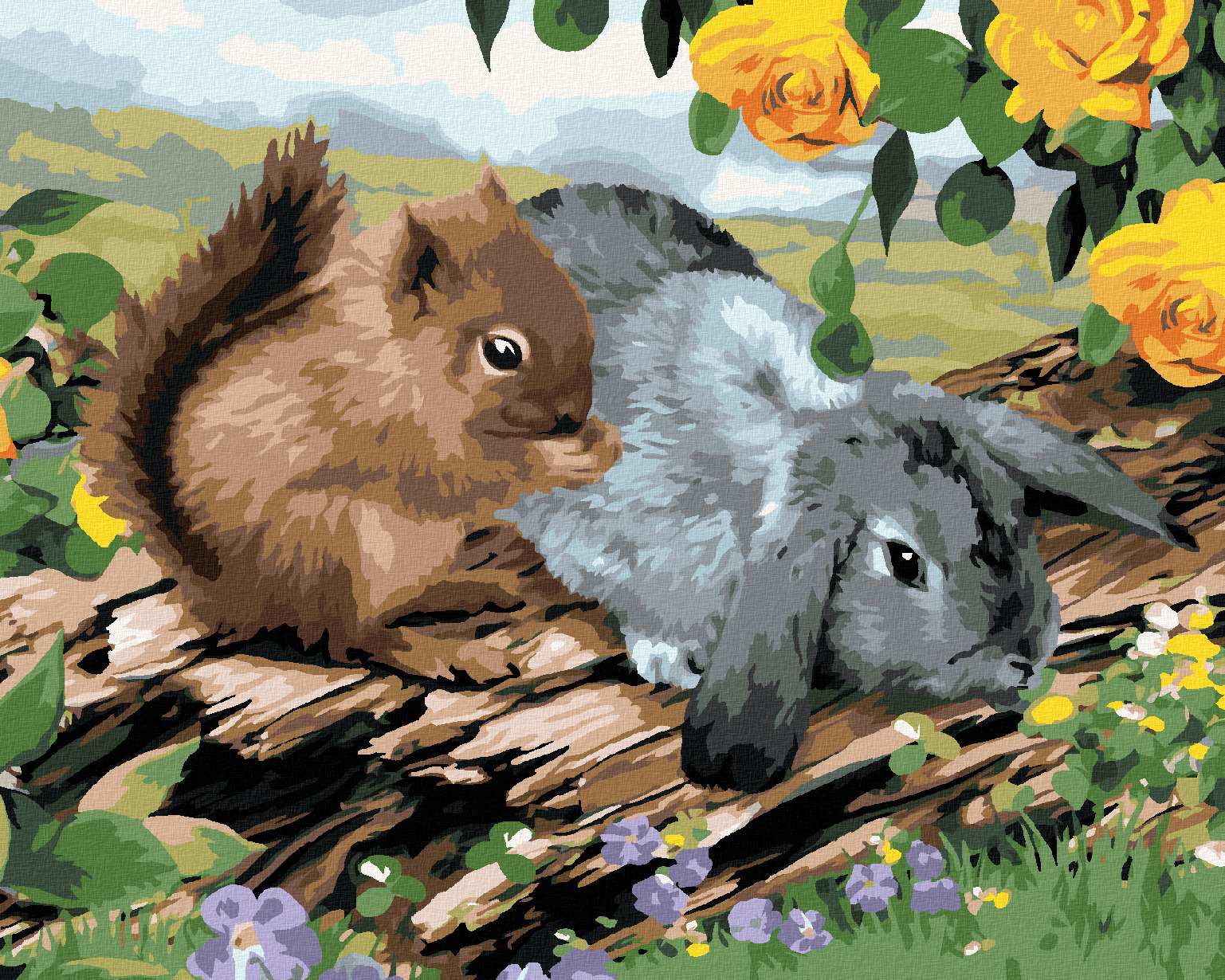 Malování podle čísel - VEVERKA A KRÁLÍK NA PAŘEZU (HOWARD ROBINSON) - 40x50 cm, bez rámu a bez vypnutí plátna