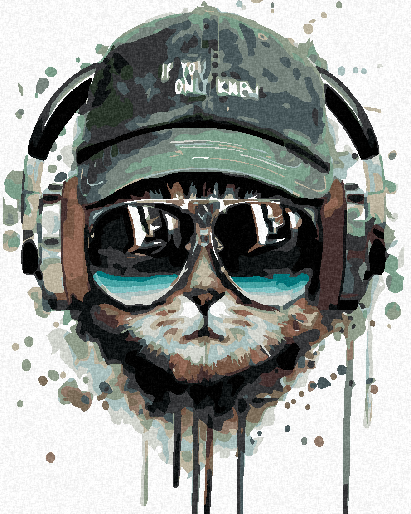 Malování podle čísel - KOCOUR SE SLUCHÁTKY - 40x50 cm, bez rámu a bez vypnutí plátna
