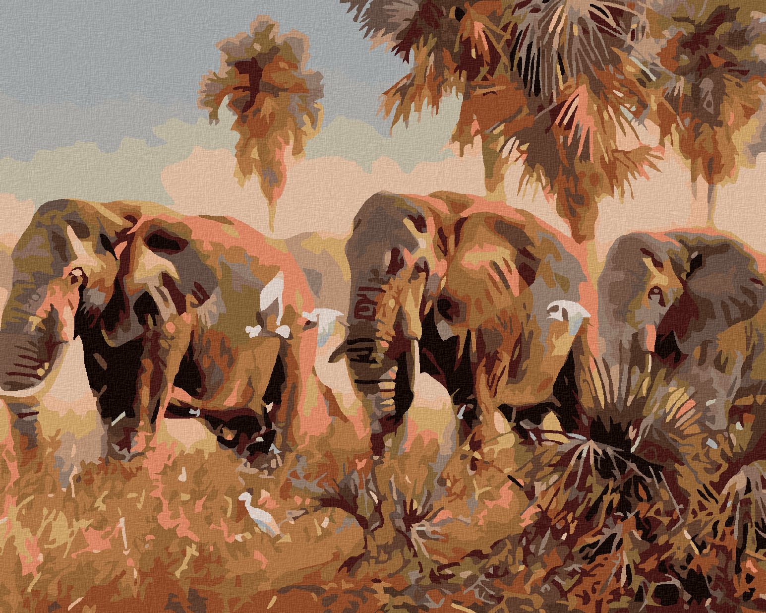 Malování podle čísel - SLONI V SAVANĚ - 40x50 cm, bez rámu a bez vypnutí plátna