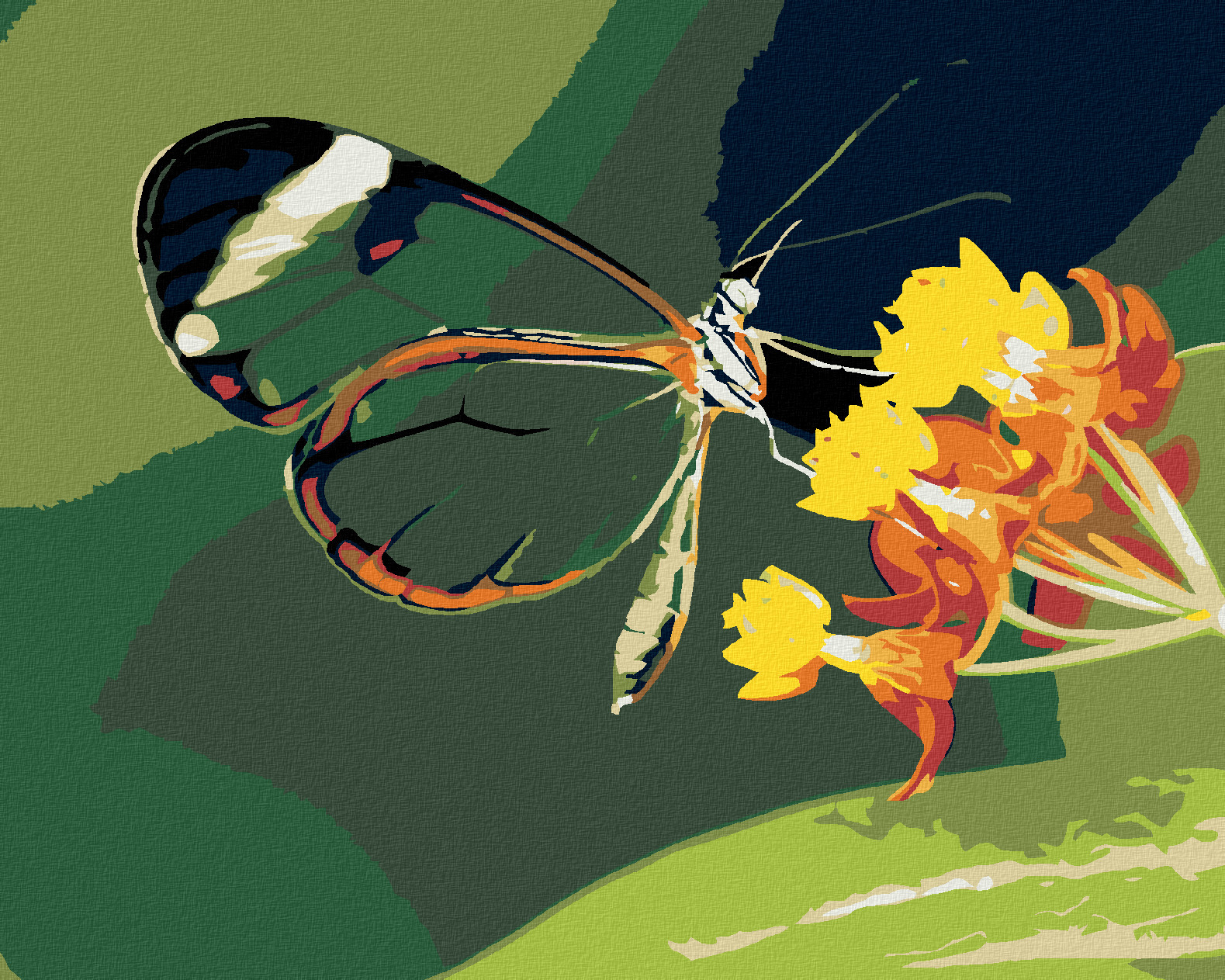 Malování podle čísel - MOTÝL A KVĚTINY - 80x100 cm, bez rámu a bez vypnutí plátna