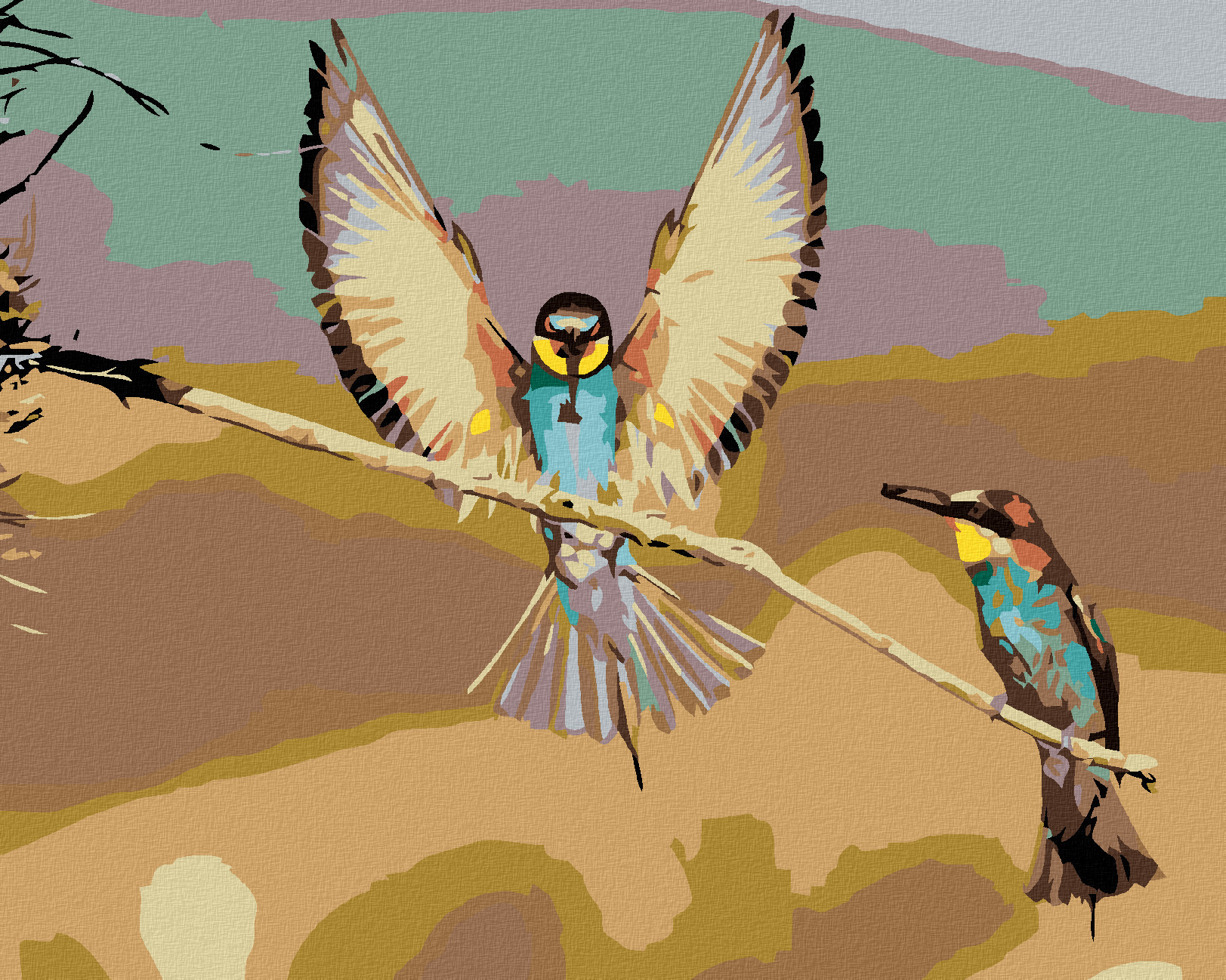 Malování podle čísel - DVA PTÁČCI NA SUCHÉ VĚTVI - 40x50 cm, bez rámu a bez vypnutí plátna