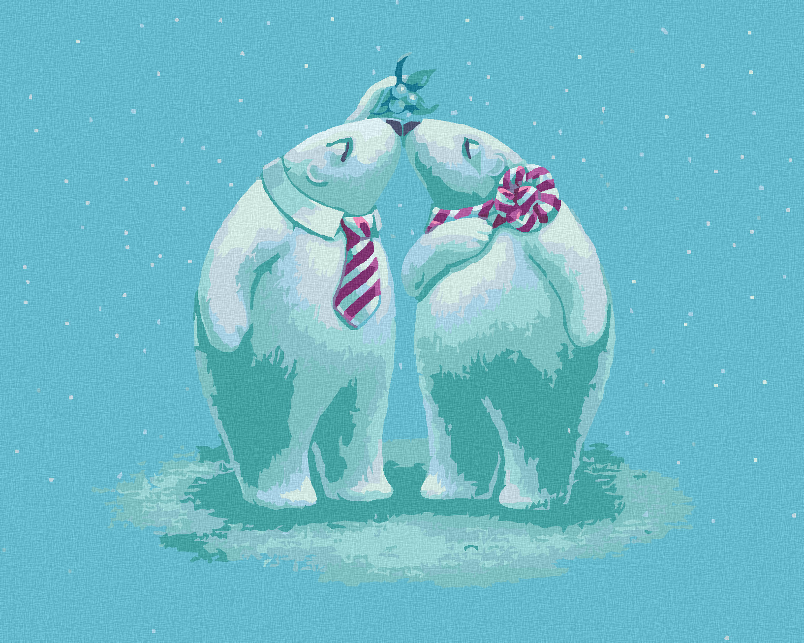 Malování podle čísel - DVA MEDVÍDCI POD JMELÍM (SUE ELLEN BROWN) - 80x100 cm, bez rámu a bez vypnutí plátna