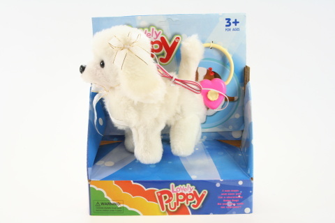 Pejsek o velikosti cca 16 cm X 17 cm na kabel.Pejsek chodí na ovládání na kabel a štěká.Při přepnutí do polohy ON - pejsek chodí sám.Provoz na 2 baterie AA.Věk 3+ číst celé