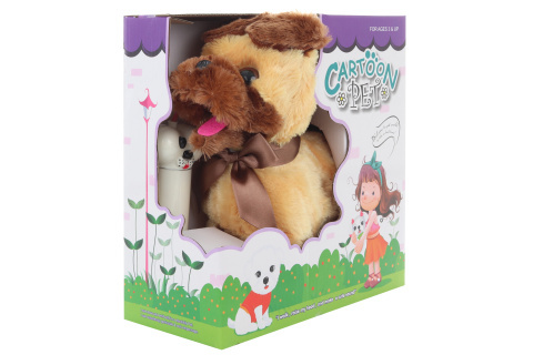Pejsek na kabel o velikosti cca 20 x 24 x 10 cm. Pejsek se ovládá ovladačem na kabel. Stisknete-li levé tlačítko, pejsek půjde dozadu. Stisknete-li pravé tlačítko, pejsek půjde dopředu. Stisknete-li prostřední tlačítko, pejsek bude štěkat. Napájení ovladače na 2 AA baterie, napájení pejska na 4...